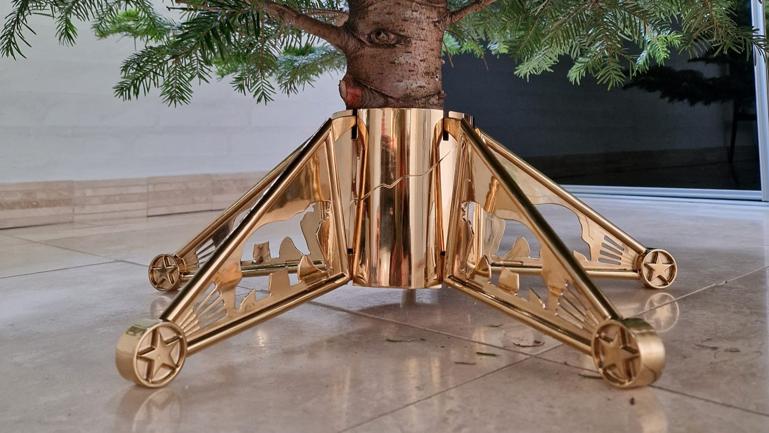 Juletræsfodens smarte design gør, at stabiliseringen af juletræet er ens i 360°, hvorfor det bliver snorlige og derfor står smukt hele jule igennem.