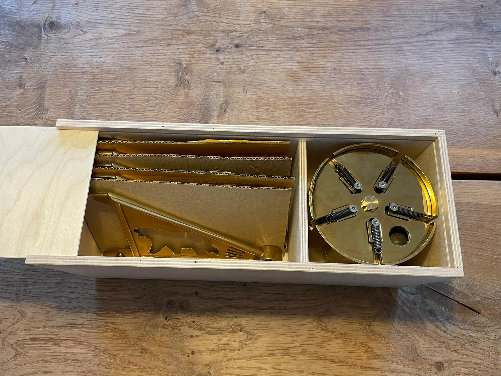 Oplev en revolutionerende måde at opsætte dit juletræ på med Bjørnekloen – en eksklusiv premium juletræsfod i skinnende guld, skabt til både funktionalitet og elegance.